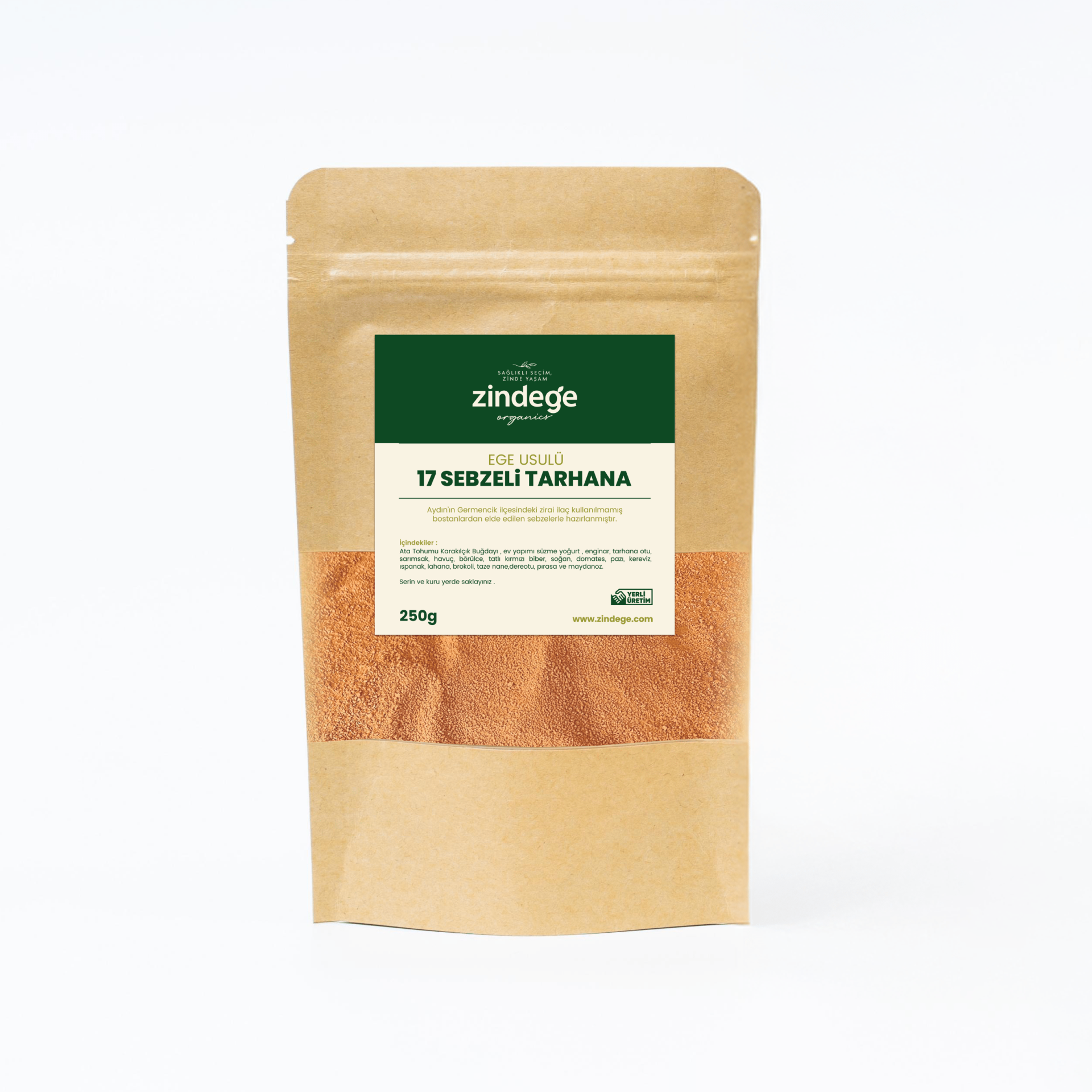 İçindekiler: Ata tohumu karakılçık buğdayı, ev yapımı süzme yoğurt, enginar, tarhana otu, sarımsak, havuç, börülce, tatlı kırmızı biber, soğan, domates, pazı, kereviz, ıspanak, lahana, brokoli, taze nane, dereotu, pırasa ve maydonoz.