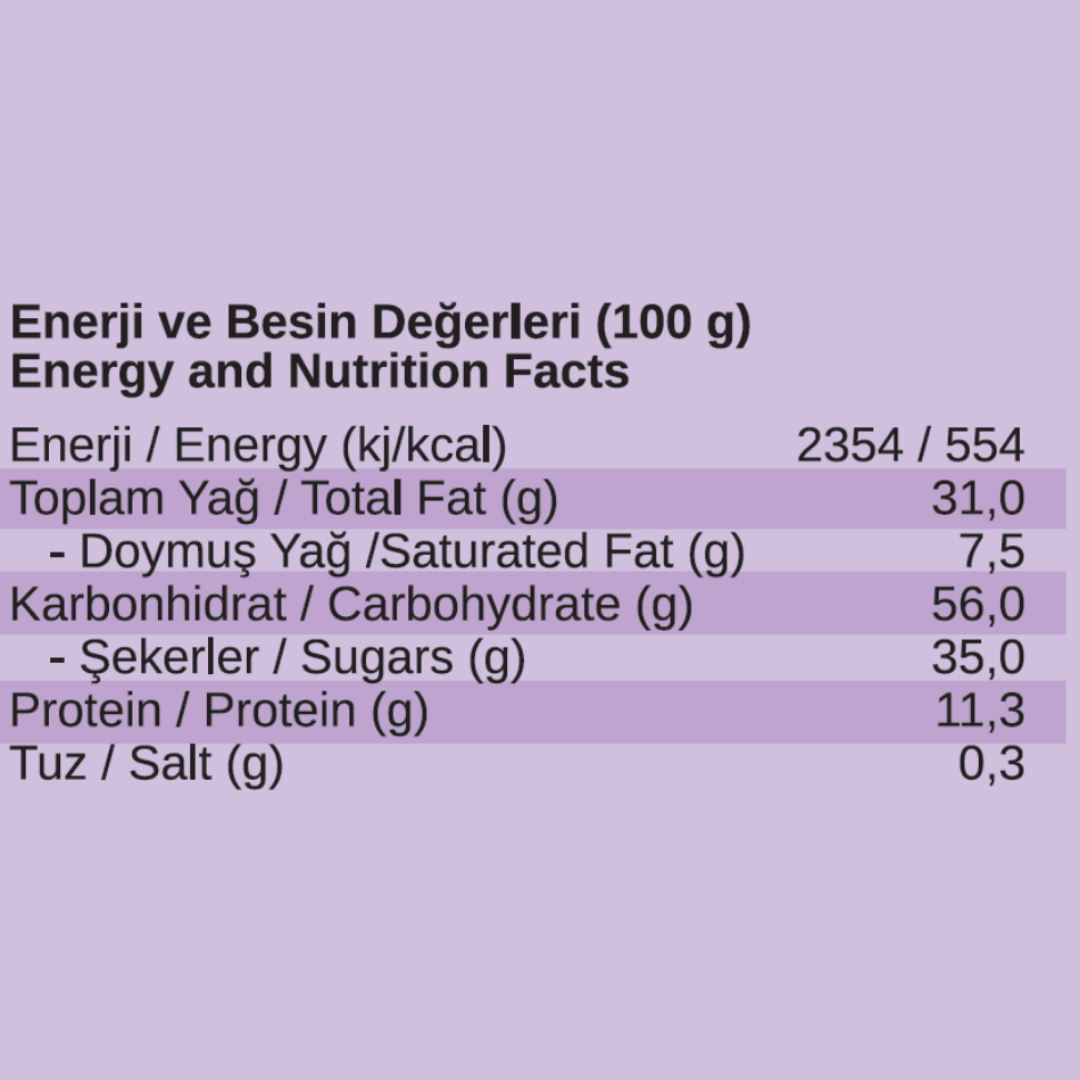 - Palm yağı ve koruyucu içermemesi sayesinde temiz içerikli beslenme trendlerine uygundur.