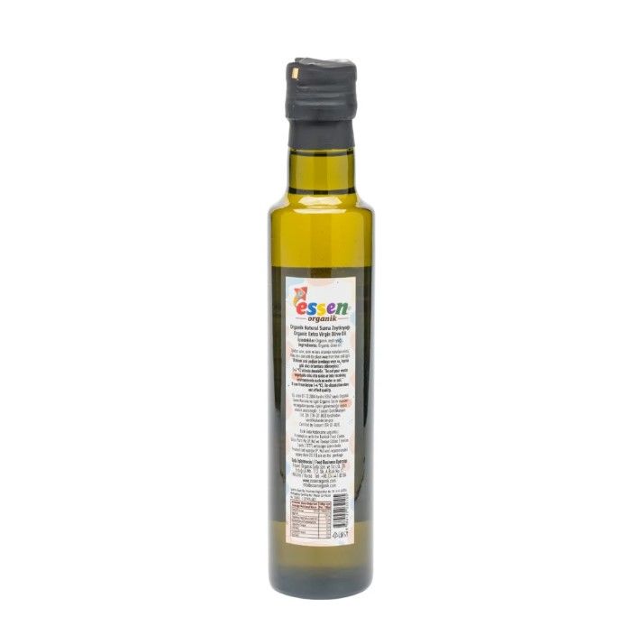 Manisa yöresinin doğal ve besleyici değeri yüksek, tam olgunlaşmadan toplanan zeytinler özenle seçilerek kırılması yöntemiyle üretilen Essen Organik Sızma Zeytinyağı serbest radikalleri tutarak antikanser özelliği gösteren antioksidan bakımından oldukça zengin bileşimine sahiptir. İçerdiği yüksek polifenollerin kayba uğramaması adına soğuk sıkım tekniği ile üretilen Essen Organik sızma zeytinyağı yemeklerde, salatalarda, soslarda, mezelerde, kahvaltılarda kullanabildiği gibi nemlendirici özelliğinden dolayı cilt ve saç bakımı içinde kullanılabilir. İçinde herhangi bir koruyucu ve katkı maddesi barındırmayan zeytinyağımızı çocuklar da dahil tüm tüketici grubuna hitap etmektedir.