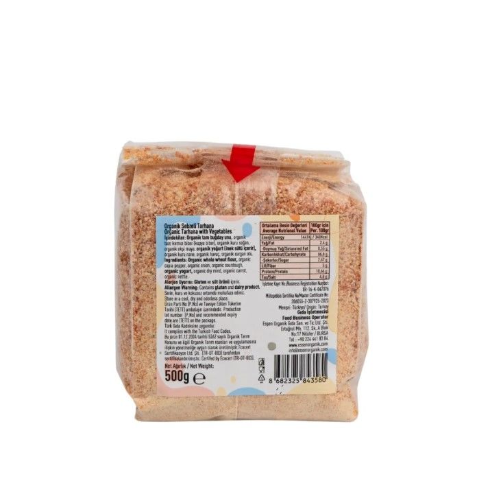 - İçeriğinde; organik tam buğday unu, organik kapya biber, organik kuru soğan, organik ekşi maya, organik havuç, organik süzme yoğurt, organik ısırgan otu bulunmaktadır.