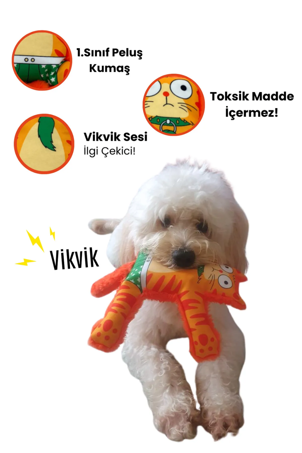 - Sesli Köpek Oyuncağı: Mihav'ın vikvik ve hışırtı sesleri, canlı renkleri köpeğinizin dikkatini çekip onu oyuna davet ederken, bu seslerle köpeğinizin merak duygusunu da artırır!