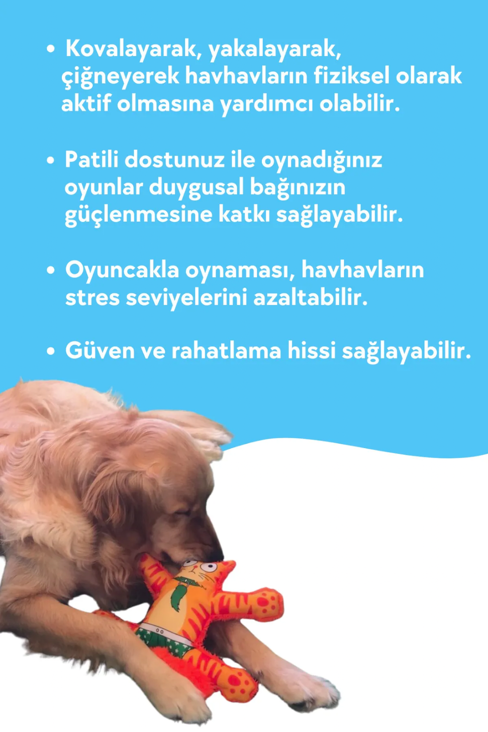 - Ebeveyn Gözetimi: Tüm köpek oyuncaklarında olduğu gibi, Mihav Köpek Oyuncağı da ebeveyn gözetiminde oynanmalıdır.